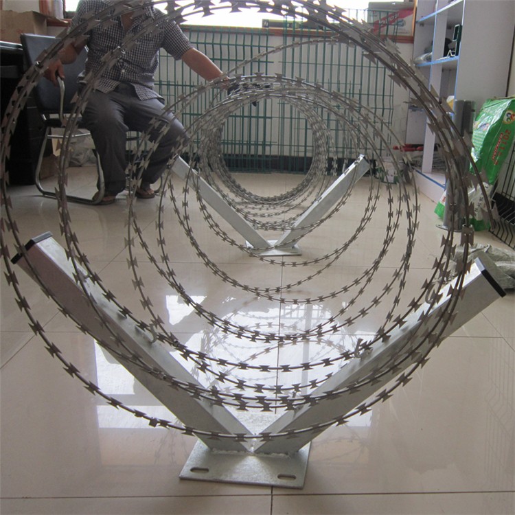 刀片刺繩也稱為刀片刺絲、刀片刺網,是一種新型防護網。刀片刺繩具有美觀、經濟實用、防阻效果好、施工便利等優異特點,目前,刀片刺繩已被廣泛應用于許多國家的工礦企業、園林公寓、邊防哨所、軍事領域、監獄、看守所、政府建筑物和其他國家的安全設施。