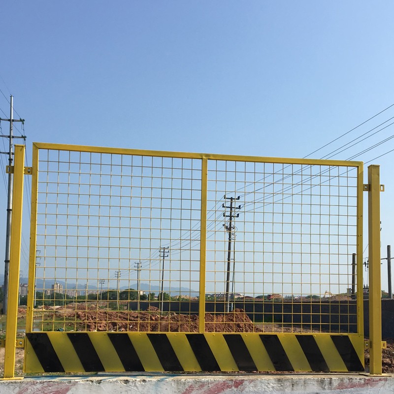 工地基坑護欄常做規格:尺寸1.2*2m ,方管20*30*1.2mm ,鐵絲網50*50*4.0mm ,立柱50*50*1.2mm ,鐵板0.8mm。