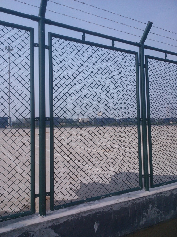綜合保稅區(qū)隔離網(wǎng)是金屬網(wǎng)狀式:由基座、 金屬網(wǎng)狀鋼管架、鐵絲網(wǎng)組成。