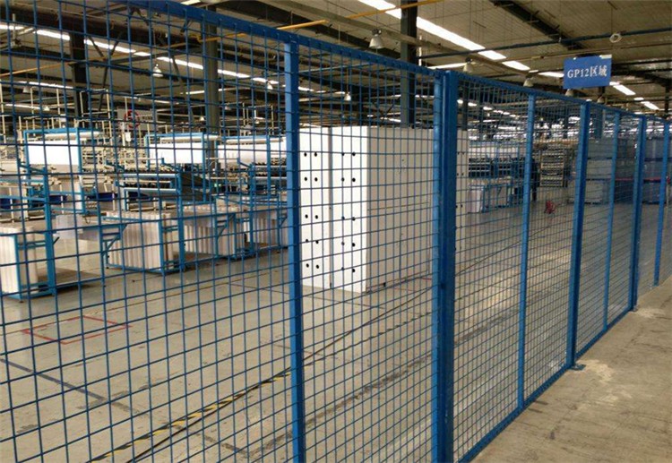 車間護欄網規格:鋼絲直徑4.0-4.5mm;網格 60mmX1 50mm;鋼管邊框30X20mm立柱 48X 2mm高度 1.6m -2.4m;立柱間距 2.5m-3m;車間隔離柵產品優點 美觀耐用 不變形 安裝快捷,是一種較為理想的金屬網墻