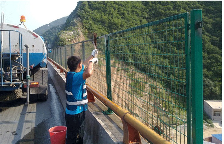 一般鐵路防拋網立柱為槽鋼100乘45乘4.0、邊框為角鋼50乘50乘3.0、配鋼板網或編織網、網孔5mm乘5mm、40乘40mm等規格。表層處理:熱鍍鋅 熱浸塑顏色有草綠、墨綠、藍色、白色等顏色。防腐防銹能力達20年。免去了后期維護的費用開支,受到廣大鐵路業主和施工方的認可和好評。