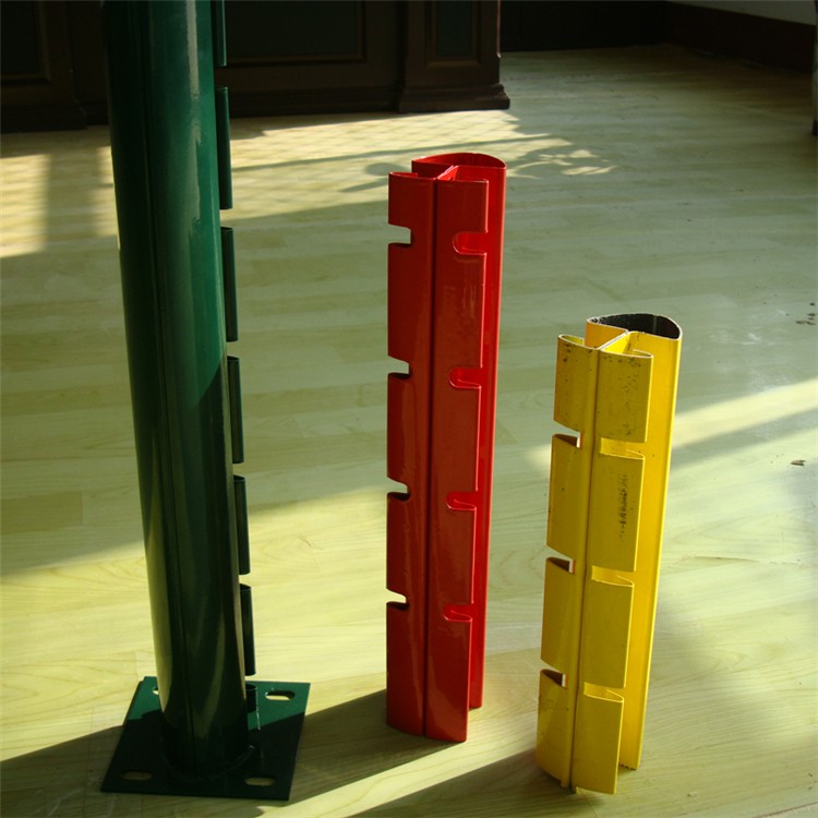 桃形立柱規(guī)格:7*10*1.0厚*2150米高。板材成型通過冷彎和冷軋。其結(jié)構(gòu)簡(jiǎn)單,形狀為規(guī)則的半橢圓型,安裝方便。柱體上的掛鉤由缺口分為幾部分并沿柱體縱向均勻地分布于柱體兩側(cè)。掛鉤板內(nèi)彎成拱型與橢圓型柱體的直邊相切,有效的防止了被撬開,保證了護(hù)欄的安全性。