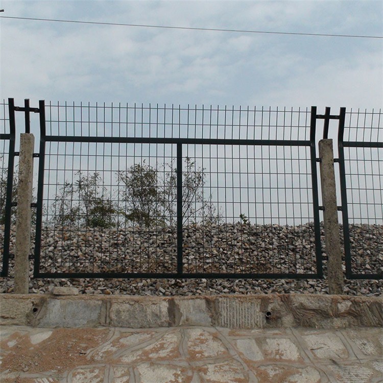 鐵路線路防護柵欄通常分為8001和8002,外形尺寸為1.79*2.76,8001一般用在橋上,并帶有一根小立柱,8002一般用在橋下,沒有小立柱,只是一張網片。8001上端30公分折彎,這也是8001鐵路防護柵欄與8002鐵路防護柵欄不同之處,,8002是直片沒有折彎,8001鐵路防護柵欄網孔標準75*150mm,絲徑4.0mm,框架30*50*2.0mm,立柱40*40*2.5mm,鐵立柱代替了澆筑水泥立柱,美觀大方,鐵路防護柵欄8001是鐵路常用的交通設施。