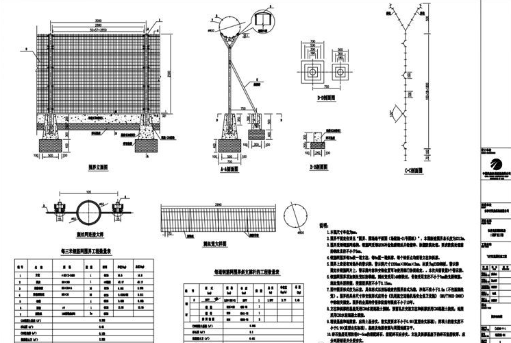 通用機場鋼筋網圍界構造圖