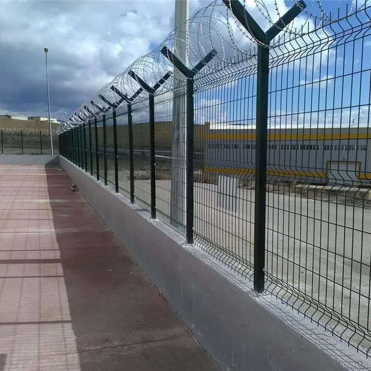 機場外圍隔離網對于機場而言就是牢固的外墻,又稱作分界線防攀爬網,Y型安全防御護網,是由安全防盜連接件和熱鍍鋅刀片刺籠、折彎網片V型支架立柱以及加強型焊接片網組成的強度和安全防御性級別很高的隔離柵產品,被廣泛應用在機場,基地等安全場所。