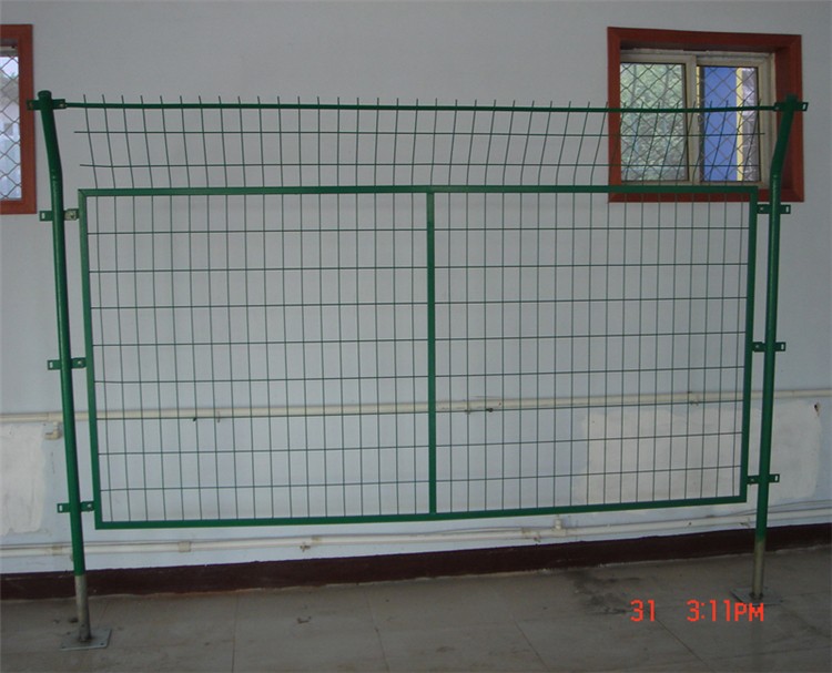 1.網片:采用熱鍍鋅+pvc包塑鐵絲角鋼框架焊接網片,尺寸為1.4m*1.98m(高*寬)。網孔尺寸為75mm*150mm,絲徑為5.0mm,熱鍍鋅+包塑后為6mm;邊框采用角鋼邊框,規格為63*40*5,網片底部高出地面0.1m。