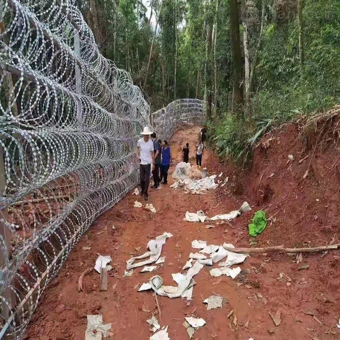 3、架設頂部或者側面的螺旋狀刀片刺繩;