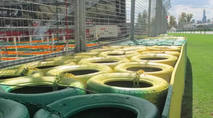 在護欄的選擇和擺放上,撞擊角度是我們需要考慮的重要因素之一,我們可以把賽車的能量分解到兩個方向上,平行于護欄的和垂直于護欄的。分解其中一個方向的能量,我們可以盡量避免護欄的形變并強迫賽車沿圍墻滑行,用摩擦力使其減速?;炷磷o墻就極其適合這種情況,因為它堅固且不易移動,而車手也不會想正面撞上混凝土,所以它雖然不適合吸收垂直方向上的能量,但它很適合利用摩擦力吸收動能,分解掉水平方向的能量。