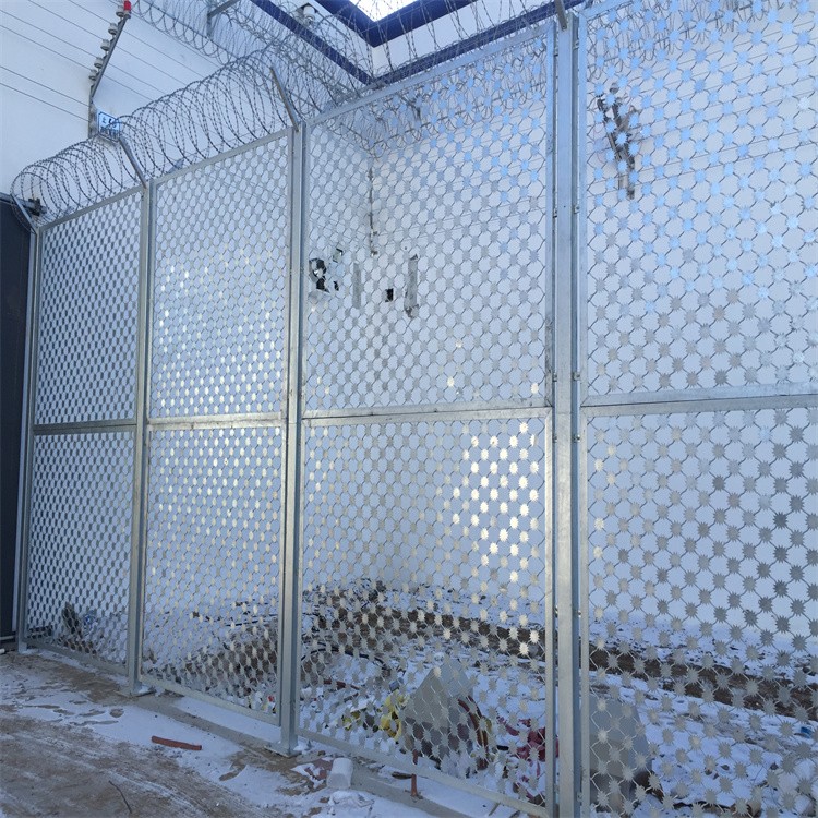 想尋找監獄隔離網的優質之選嗎?我們的熱鍍鋅梅花刺片隔離網可是在防御領域有著卓越表現的圍網,是你明智的優選。它不僅可以用在外警戒區隔離網、巡邏道加高隔離網、內5米警戒區隔離網以及各個功能區隔離網,而且還是一種設計科學、結構穩固、安全可靠的監獄隔離網。
