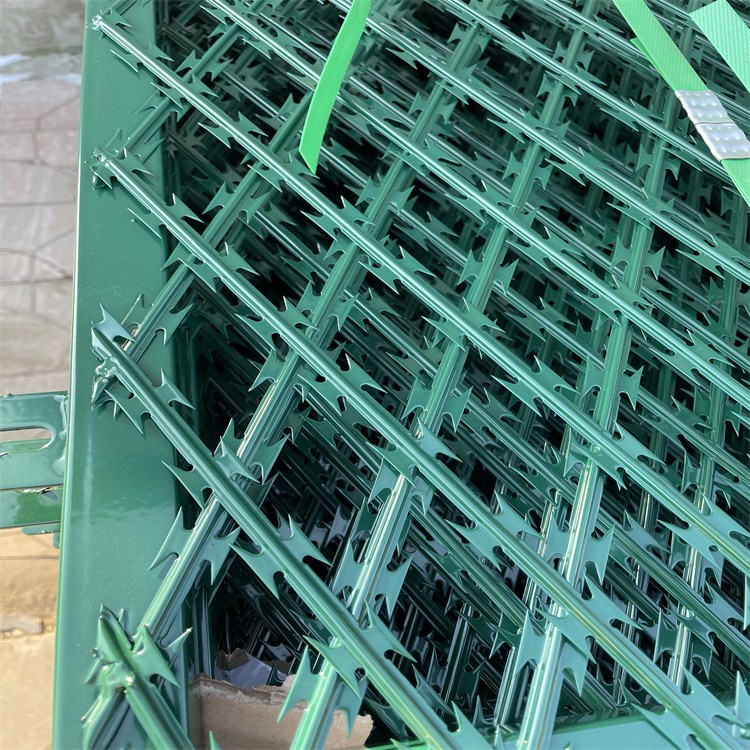 【監獄看守所焊接刀片隔離網】款產品防腐性能極強,壽命長,美觀大方,防護效果好。適合各監獄、看守所、軍事基地等安全場所使用。