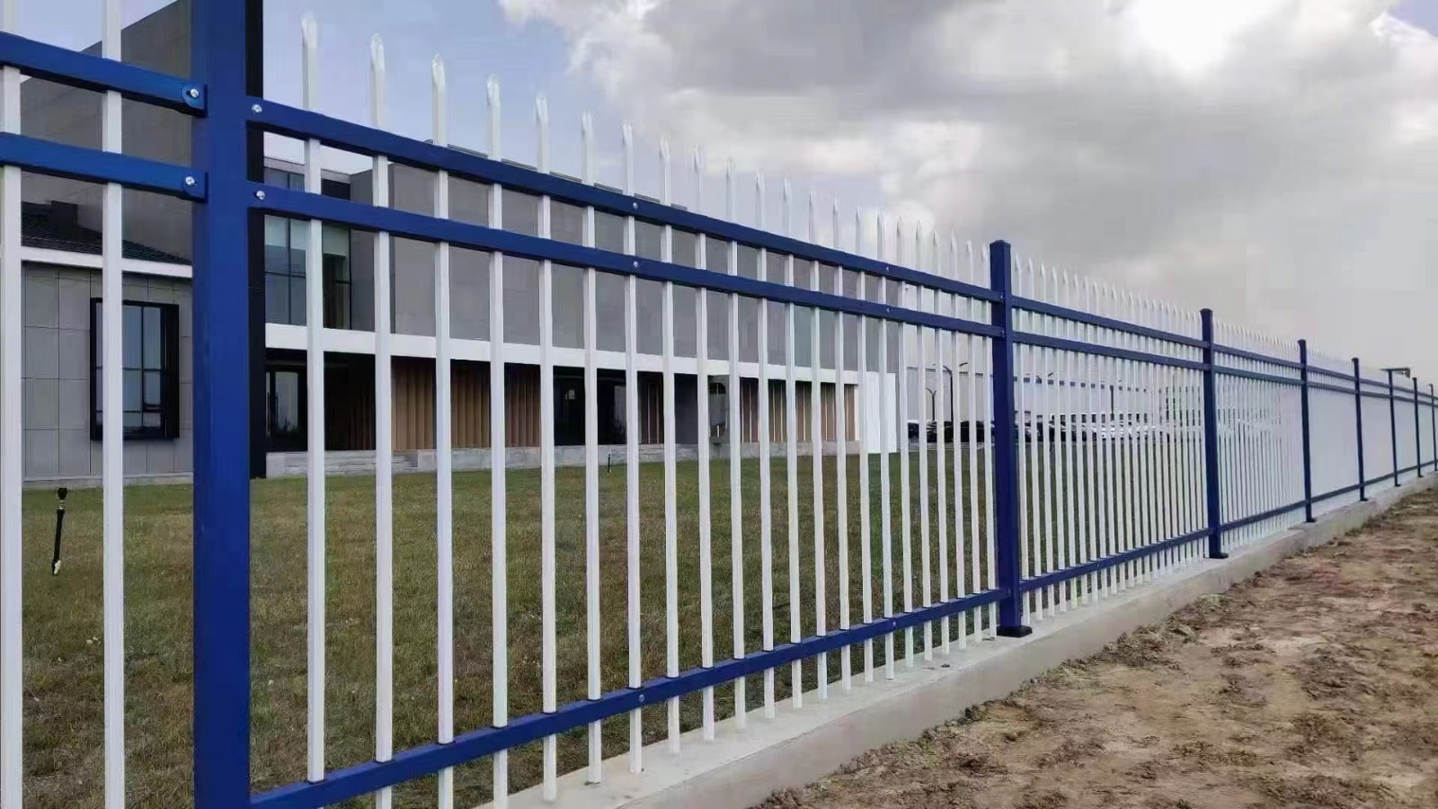 鋅鋼圍墻柵欄藍(lán)白插管