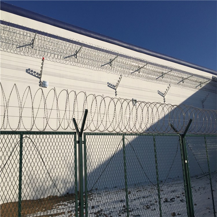 阻隔網又被稱作看守所圍欄阻隔網是一種專門用于監獄外圍的安全防護運用的阻隔柵商品。阻隔網用國產優級低碳鋼絲或鋁鎂合金絲經噴塑編焊而成,網格構造簡練、便于運輸、裝置不受地勢崎嶇約束,特別是關于山地、坡地、多彎地帶適應性強。阻隔網商品堅固耐用、價格中等偏低,適合大面積選用。阻隔網能夠用于機場、公路、鐵路、橋梁兩側的阻隔與防護使、機場、港口、碼頭的安全防護、市政建設中的公園、草坪、動物園、池湖、路途、住宅區的阻隔與防護、賓館、酒店、超市、公共場所的防護與裝飾等。又稱作.機場阻隔網、Y型安全防護阻隔網”,阻隔網是由V型支架立拄,加強型焊接片網的防護產品。