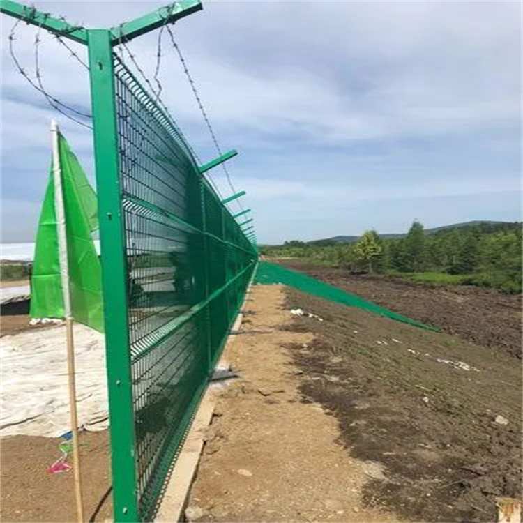 機(jī)場(chǎng)圍界,也叫機(jī)場(chǎng)鋼筋網(wǎng)圍界,鋼絲網(wǎng)圍界,機(jī)場(chǎng)護(hù)欄網(wǎng) 機(jī)場(chǎng)鋼筋網(wǎng)圍界是一種高安全隔離防護(hù)網(wǎng),一般由鋼筋焊接網(wǎng)、Y型防護(hù)立柱以及蛇腹式刀刺網(wǎng)等幾大主體組成, 既有良好的通透性,又能起到強(qiáng)有力的安全隔離防護(hù)效果,同時(shí)美觀大方,與周圍環(huán)境以及任何景觀、設(shè)備都能 完美相融合,因此機(jī)場(chǎng)鋼筋網(wǎng)圍界常被大量應(yīng)用于機(jī)場(chǎng)隔離,監(jiān)獄防護(hù)、軍事基地圈護(hù)等特殊地帶的安全防護(hù)。