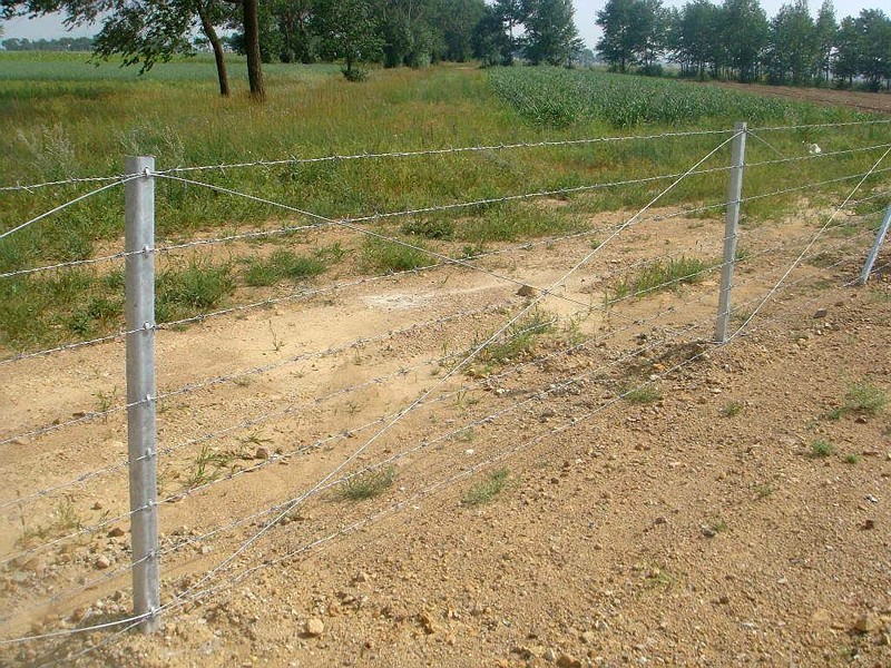 刺繩護欄網材料:本次擬用刀片剌網規格為BTO-22 ,刺罷直徑600mm。刀悵度22mm ,刀片寬度15mm ,刀片間距34mm ,鍍鋅噴塑。刺繩規格為雙股2mm鐵絲捻扎而成,刺結間距102mm,鍍鋅噴塑。噴塑顏色均為墨綠色。