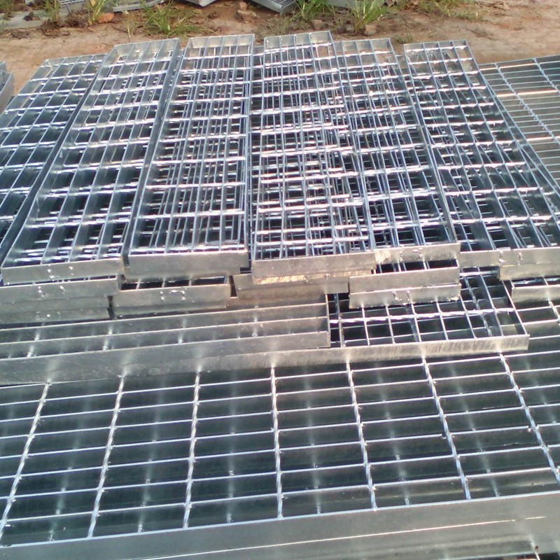 1. 鋼格板的結構 ,鋼格板由負載扁鋼和橫桿按必定的距離經緯排列而成格柵,經向為負載扁鋼,即鋼格板的長度方向;緯向為橫桿,即鋼格板的寬度方向。橫桿正交于負載扁鋼上的扭絞方鋼、圓鋼或扁鋼。在負載扁鋼和橫桿的每個交點處,經過焊接將其固定。
