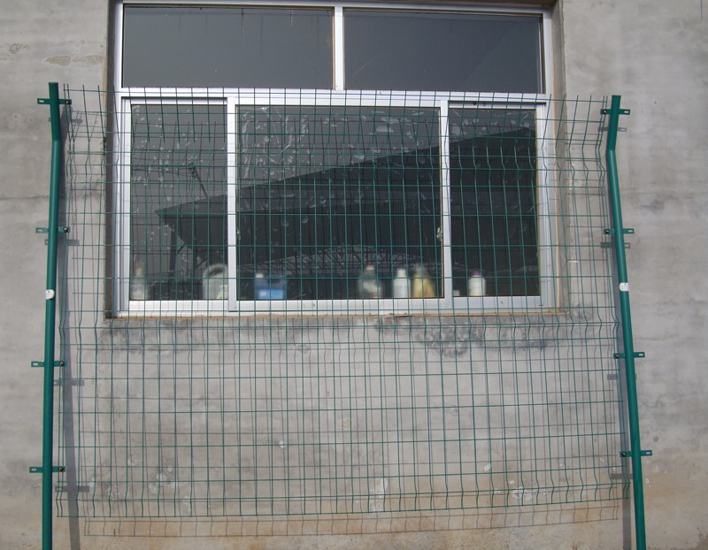 圈地圍網兩根立柱,柱中到柱中的距離正好是圍欄網片的寬度,或許要把這個尺度把握好才干順暢的裝置上護欄網片。
