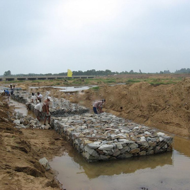賓格網(wǎng)可用于堤岸防護(hù),或者對(duì)整個(gè)河床及河岸進(jìn)行防護(hù),比較適合原始岸坡較緩的河道。以設(shè)計(jì)枯水位為界,上部為護(hù)坡工程,下部為護(hù)腳工程。護(hù)坡工程是對(duì)原始岸坡進(jìn)行修整處理后再鋪設(shè)護(hù)坡反濾層及生態(tài)格網(wǎng)網(wǎng)墊結(jié)構(gòu)面層,以防止水流沖刷、波浪沖擊、水位變化和地下水外滲侵蝕等對(duì)岸坡表面的破壞;護(hù)腳工程則采用抗沖材料鋪設(shè)于坡腳附近水下河床,形成保護(hù)層,防止水流淘刷,達(dá)到保護(hù)堤岸根基的目的。格賓網(wǎng)最大的優(yōu)點(diǎn)是生態(tài)性,其內(nèi)部充填的是天然石料,石料之間有間隙,允許植物在其中生長(zhǎng),還可以有針對(duì)性地播種合適的植物,具有工程護(hù)坡與植物護(hù)坡的雙重功效。