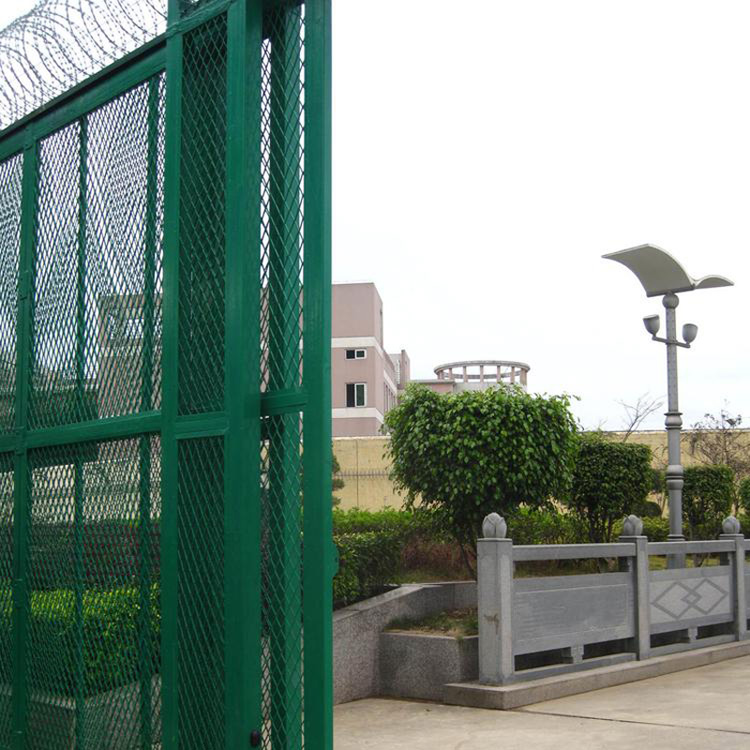 (二)門邊框: 50x50x2. 5mm,網孔為菱形刀刺網,網孔50x100mm。網絲與邊框焊接,焊接質量符合 CO2 保護悍焊接工藝規程的要求。