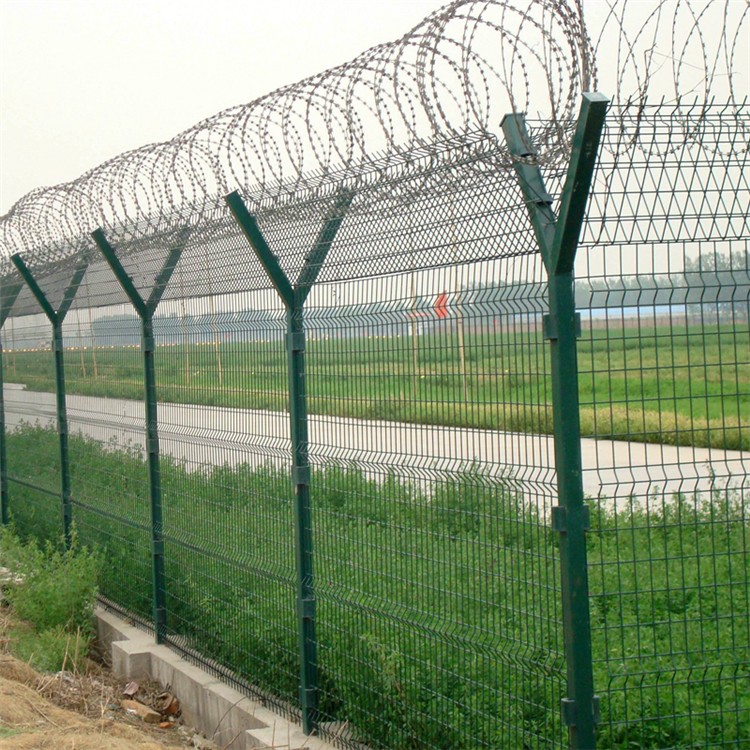 防爬Y型機(jī)場(chǎng)圍界網(wǎng)頂部裝有刀片刺絲和刀片刺繩,安全保護(hù)功能將得到很好的加強(qiáng)。其產(chǎn)品外形美觀,顏色多樣,不僅起到圍欄的作用,還起到美化的作用。Y型機(jī)場(chǎng)圍界網(wǎng)可以電鍍、熱鍍、噴涂、浸塑等防腐形式,具有良好的抗老化、防曬、耐候等特點(diǎn)。艾瑞根據(jù)用戶需求生產(chǎn)各種規(guī)格和尺寸的Y型機(jī)場(chǎng)圍界網(wǎng)產(chǎn)品!