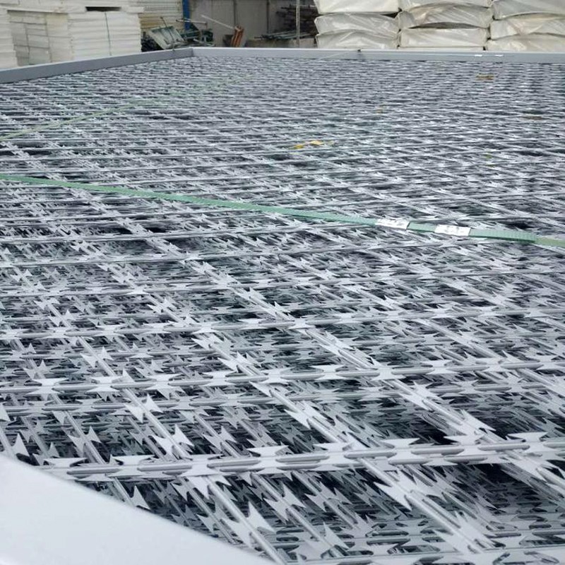 直線型刀片刺繩又名刀刺隔離網由機械沖壓成銳利的薄片鋼板,然后包裹上鍍鋅鐵絲作為芯線,然后經過大型焊接機械排焊焊接成網狀,刀片刺網防護隔離能力較強,鋒利的刀型刺防阻效果好,產品美觀,不易觸摸,牢固耐用,起到了很好的嚇阻效果,產品施工便利,安裝快捷,配備鍍鋅鋼管可直接焊接成護欄使用也可用于墻體保護門窗防護隔離。